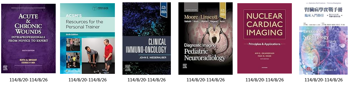 【8月新書通告】本月新書含復健科、一般外科、病檢、核醫、放射、營養科新書,展示至2025/8/26止。