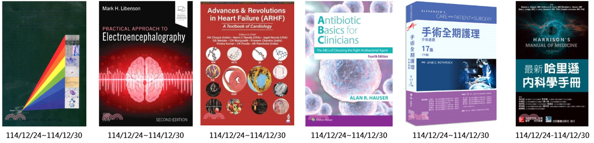 【12月新書通告】本月新書含心內、一般外、神經科、核醫等新書,展示至2025/12/30止。