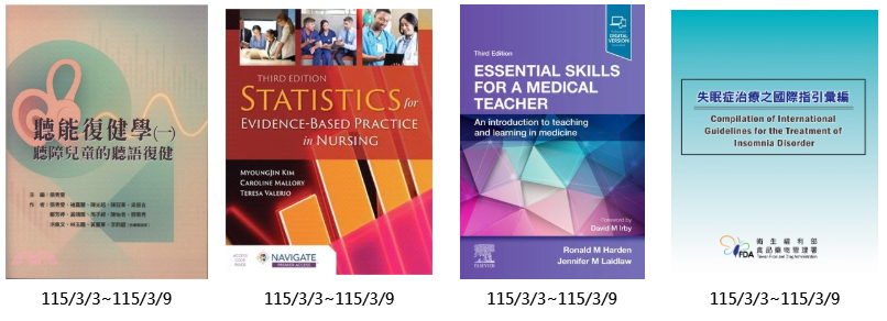 【3月新書通告】本月新書有醫學教育、聽力、院長贈書等,展示至2026/3/9止。